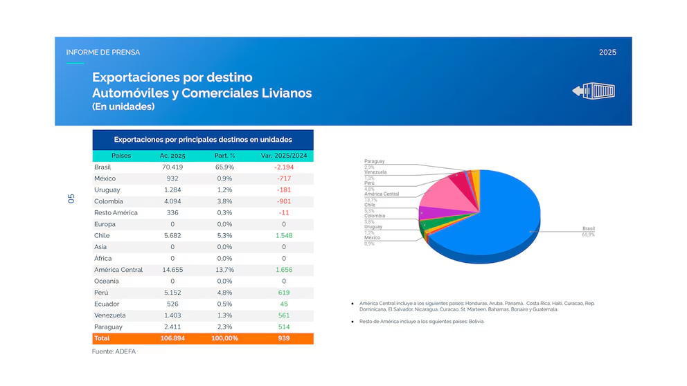 Continuando con los datos de mayo, el informe que publicó este miércoles la Asociación de Fabricas de Automotores (Adefa) que el volumen de vehículos exportados fue de 26.346 unidades, lo que arrojó un aumento de 16,4% en su comparación con abril. Si la comparación es contra el mismo mes del 2024, el sector registró un alza en los envíos al exterior del 14,7 por ciento, lo que en un escenario desafiante como el que propone un mercado brasileño con mucha oferta extrazona asiática y un real devaluado, es una noticia que la industria nacional recibe con optimismo para el futuro.