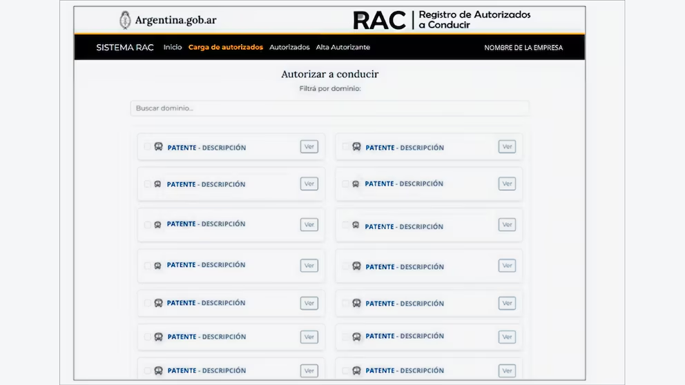 Para poner en funcionamiento este nuevo sistema, la Dirección Nacional de los Registros de la Propiedad Automotor y Créditos Prendarios (DNRPAyCP) creó el Registro de Autorizados a Conducir (RAC), que se administra en un sitio web (rac.dnrpa.gov.ar) al que se debe acceder con un encargado de flotas de cada empresa.